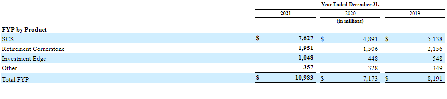 In the years they’ve written the most first-year premium in SCS, 2019 and 2021, there is an associated jump in the reconciliation losses to their non-GAAP operating earnings: