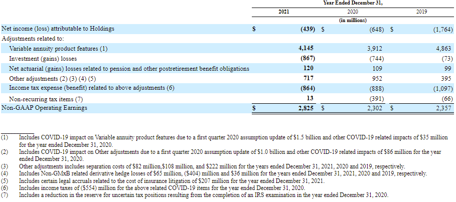 Using non-GAAP reconciliations as KPIs as an investor require faith in management to accurately understand GAAP considerations and honestly assess whether adjustments are required for the business. Why does GAAP require, and management later back out, a $4.145B charge to the Variable Annuity business for 2021?