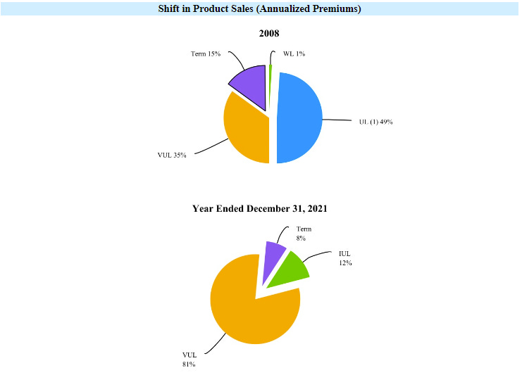 SCS will be the engine of growth for EQH going forward- this was a long-term decision made back in 2008 to run-off their Universal Life/GMxB business and focus on VUL, specifically SCS. Backing out of the GMxB business has given EQH a leg-up over other L&R businesses, with only 15% of the business having a guaranteed return (this was accelerated by the Venerable transaction in 2021):
