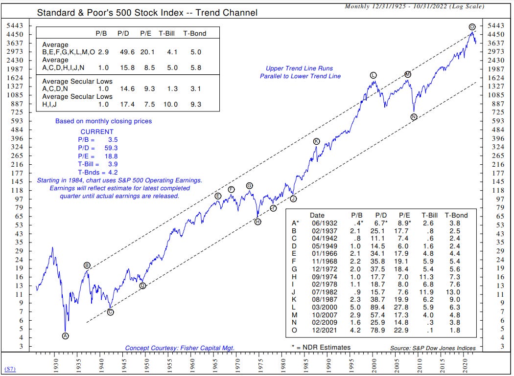 I draw this comparison not to predict a 16-year flat market; no individual year is comparable to another, S&P constituents change constantly in quality and growth rate. I am saying that the market in both 1966 and 2022 have reasonable multiples (18x earnings vs. ~4.5% bills/bonds). The 1966-82 period shows that we don’t need a dramatic entry point overvaluation to see a period of flat broad market returns. Incidentally, the top of the tech bubble presented at 28x~ earnings vs. a 6%~ bill rate (point L); a fourteen year flat return from point L onward is not as analogous to today’s market as 1966 for that reason.