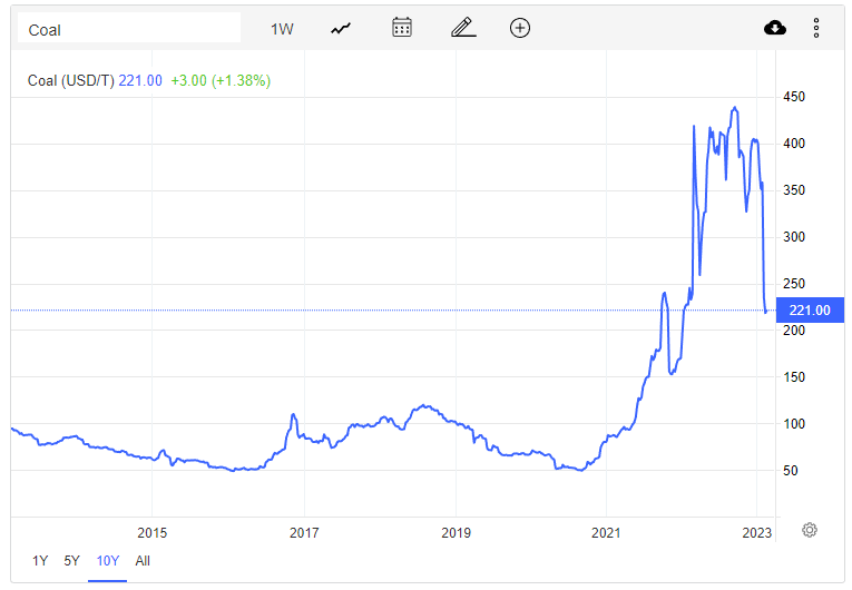 Not for the faint of heart, but Pakistan announced it would quadruple coal plant capacity to cut energy costs. There are three Indonesian-based, listed companies with double digit dividend yields trading at 2-3x earnings (according to Bloomberg- above). Newcastle coal prices have pretty much quadrupled since mid-2020: